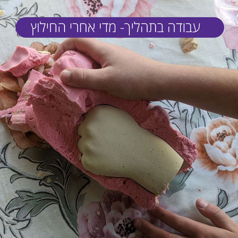 בסוף המפגש, אחרי שיצרנו את התבניות אני לוקחת את החומרים איתי לסטודיו כדי לעבוד על התוצר הסופי.